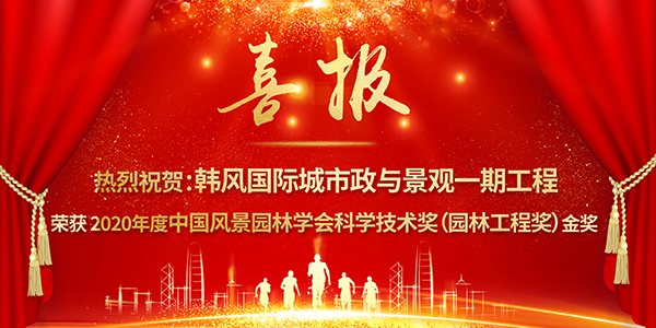 会上,由诚邦股份匠心打造的“韩风国际城市政与景观一期工程”荣获2020年度中国风景园林学会科学技术奖(园林工程奖)金奖!