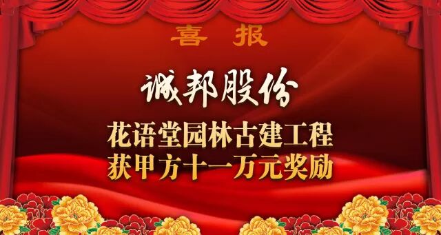 近日,嘉兴京禾房地产开发有限公司对花语堂园林古建工程进行第一次节点考核和工程质量考核。经过现场评比,公司以节点考核第一名的成绩,获100000 元人民币奖励;在质量考核中由公司施工的位于博海路西侧门头油漆一处,鉴于工作完成出色,嘉兴京禾房地产开发有限公司决定对公司加大奖励,奖励人民币 10000元。