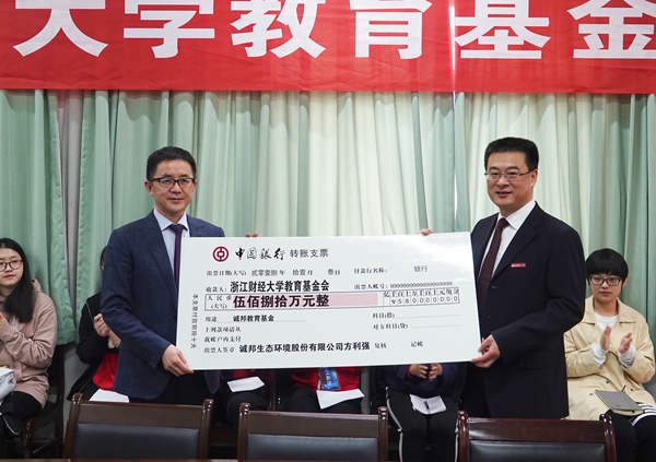 11月3日上午,由诚邦生态环境股份有限公司董事长方利强捐资设立的“诚邦教育基金”签约仪式在浙江财经大学隆重举行。