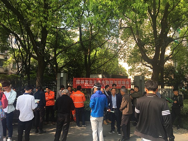4月17日上午,杭州市绿化管理站在运河叶青兜段召开天牛生物防治现场示范会议。公司作为拱墅区试点绿地养护单位,特派养护管理人员和工人到现场观摩学习。